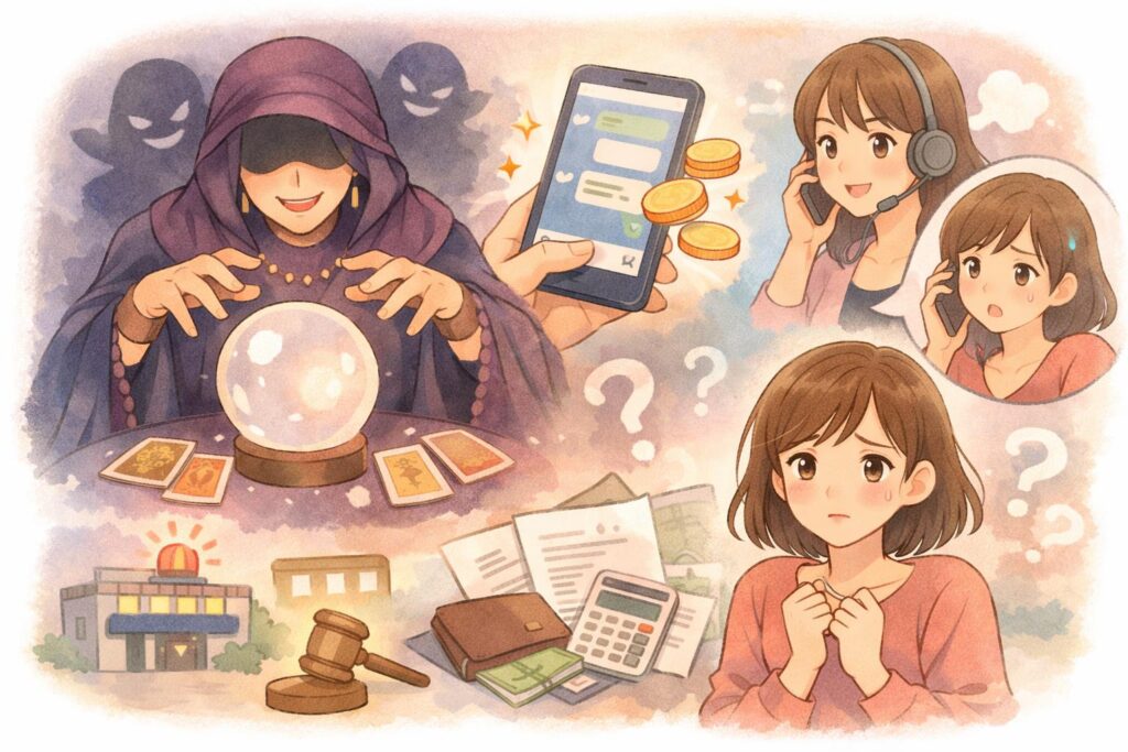 LINE占いや電話占いで、気づけば高額な課金をしていませんか?近年、占い師が利用者の不安を煽って鑑定を引き延ばしたり、恋愛感情を利用したりする悪質な占い詐欺が急... -